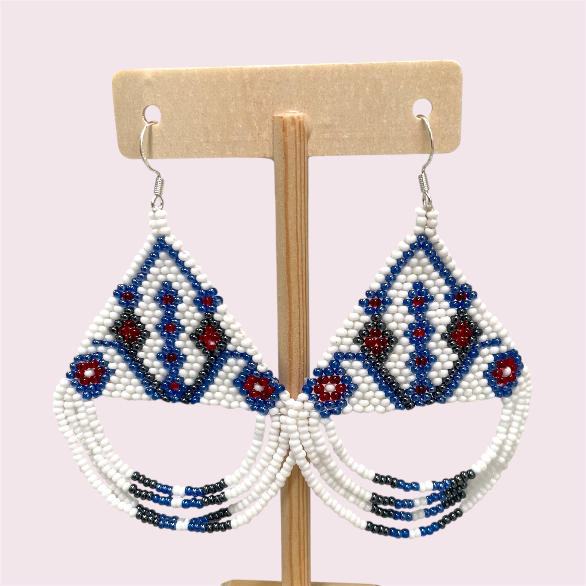 - No. 6 - White blue red 'aztec' 7cm drop
