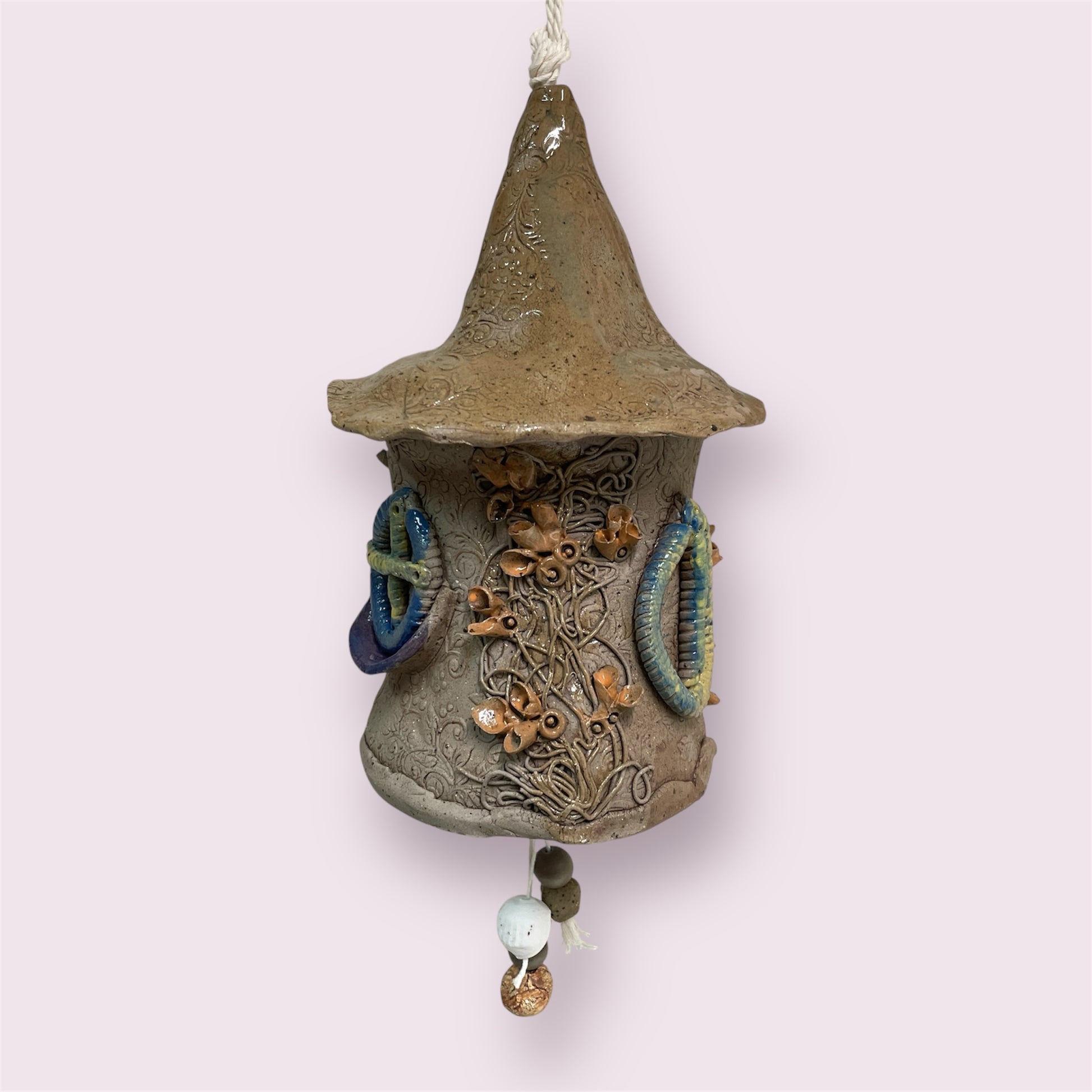 Welcome home to this sweet wee bird-house. Can be hung outdoors.