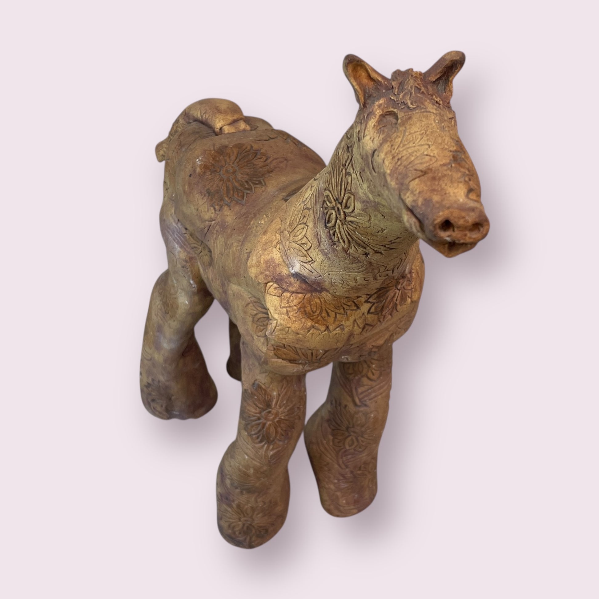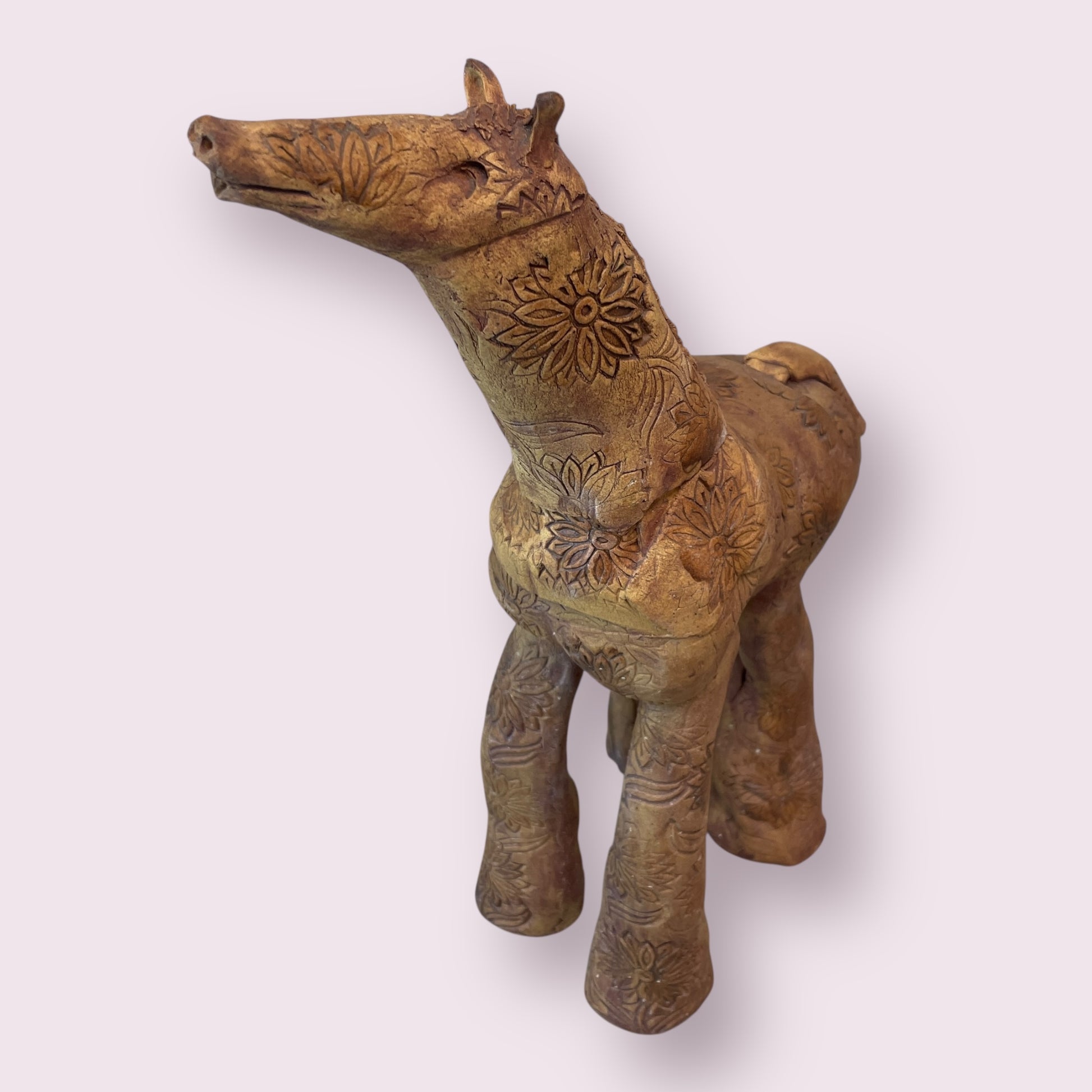 Gorgeous, daisy printed horse sculpture. Full of character.