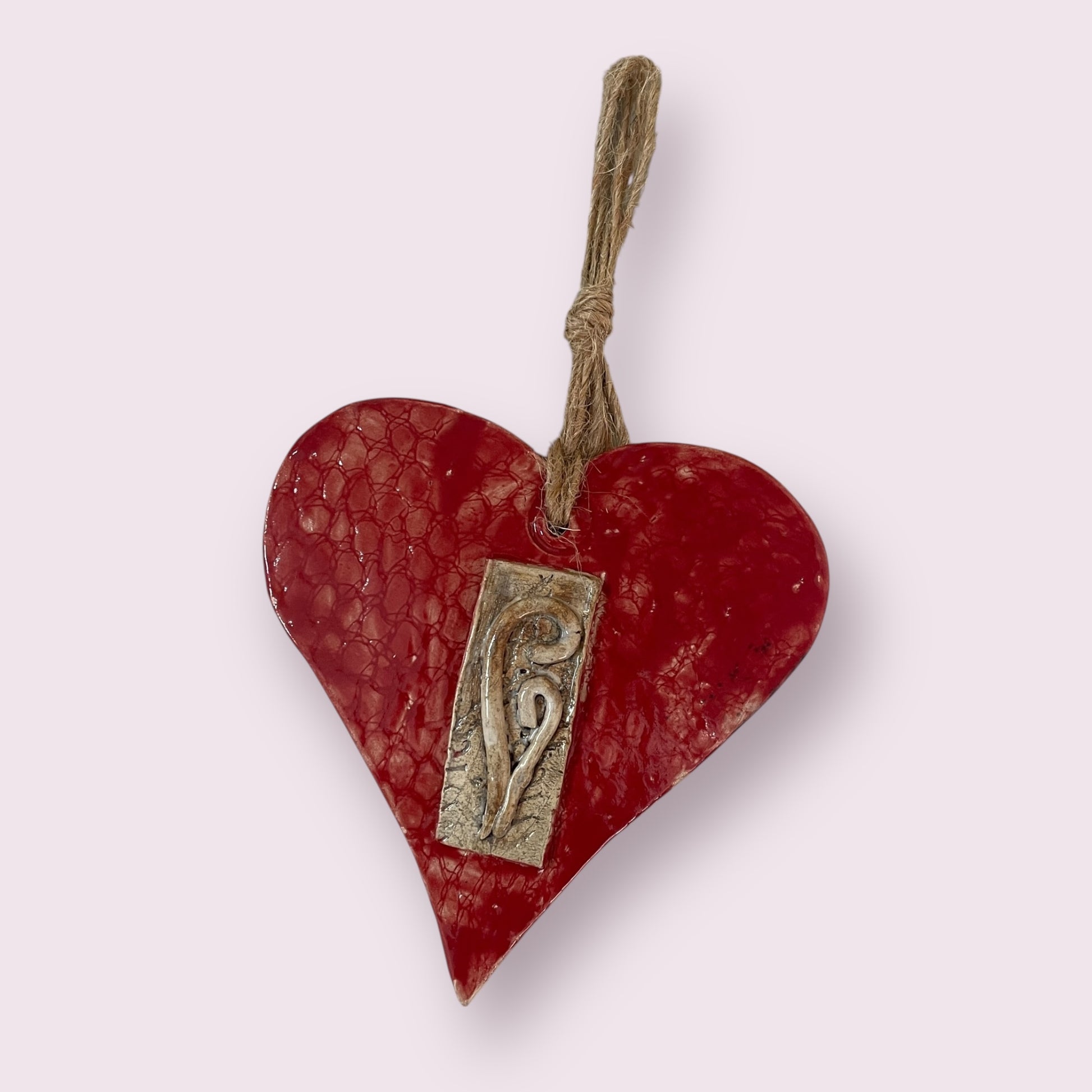 Wall plaque of a bright red heart and entwined korus