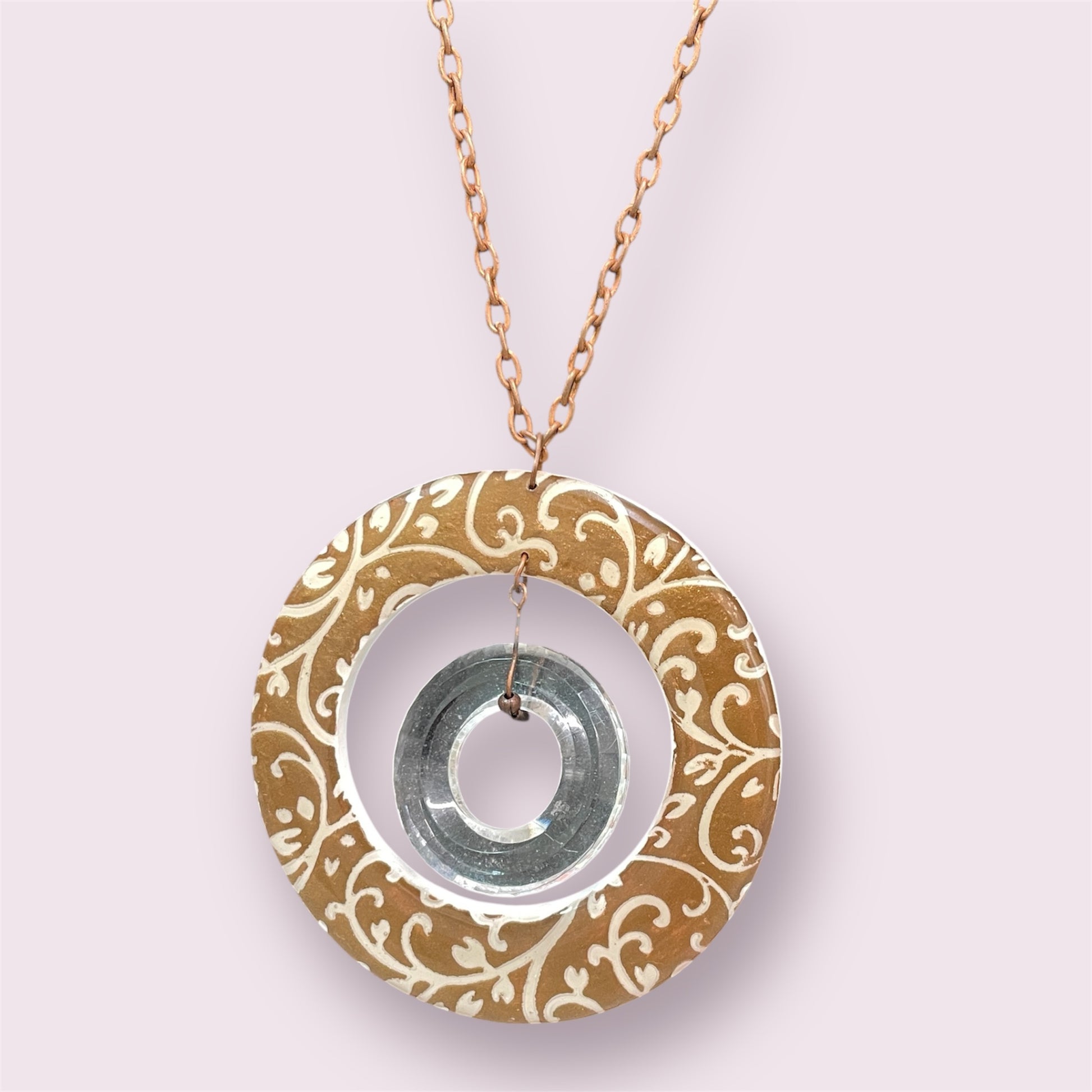 Dimensions: Pendant 8cm dia, chain 92cm long