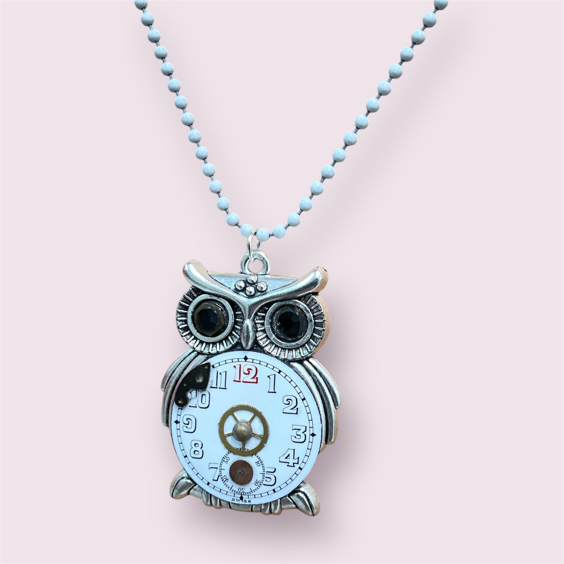 Upcycled necklace, owl with watch mechanism