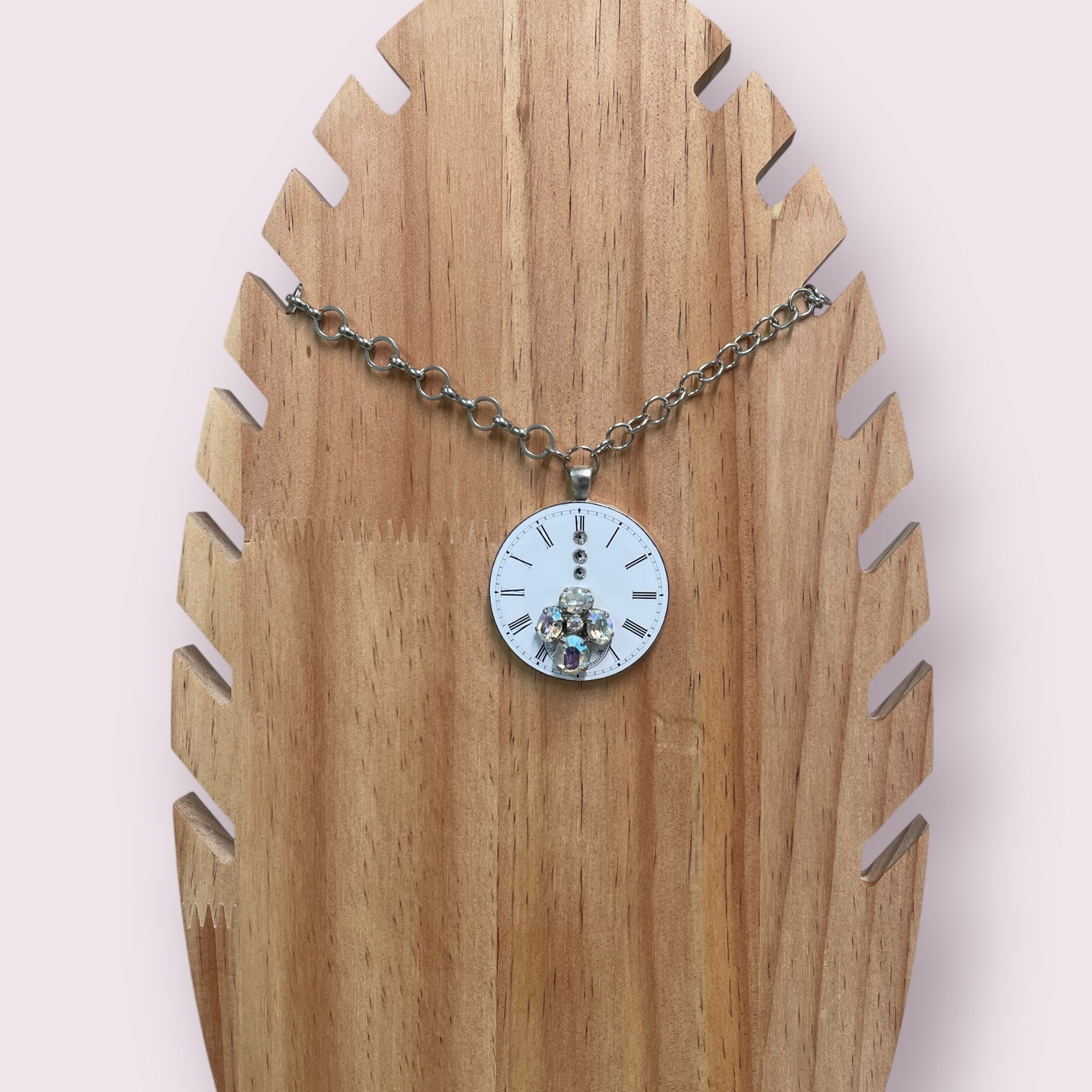 Upcycled necklace, white watch with diamanté detail on a chunky chain.